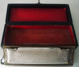 A quick look at an Australian harmonica box owned by Canadian harmonica collector, Doug Dawson, a couple of record reviews and a link to an article written by Mark Weber about a new addition to my harp collection, which is rewriting Chromatic history, Hohner’s very first Chromatic, the Up-To-Date model from 1898! Just six letters Gollygeewowee!