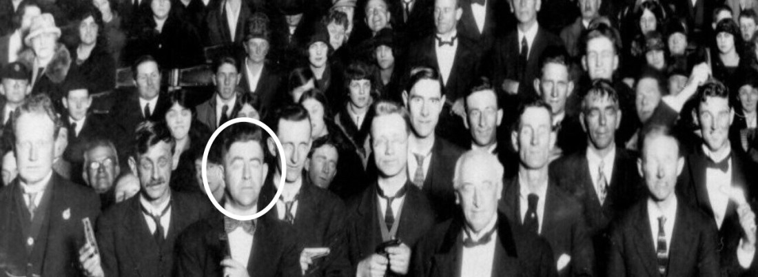 In the picture (above) of the 1925 Australian Mouth Organ Championships of South Street Ballarat, I believe (for every drop of rain that falls) that Sydney Dickens is the man circled. Through sophisticated forensic facial recognition techniques I ascertained by my optical lenses that the picture top right of Sydney Dickens was a 95% match on all known indicators for the man circled.