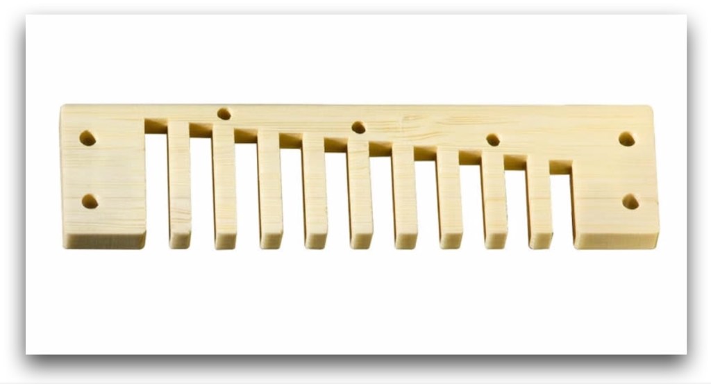 That was going to be the end of it, but Hohner has looked at using renewable materials for their combs and designed a bamboo comb in the last ten years. Perhaps they were reminded of the harmonica’s distant cousin the Chinese Sheng. Technically bamboo is not a wood, but a grass. This is used in their Crossover and Thunderbird models. Its construction consists of a series of thin bamboo strips glued together and is triple lacquered with Simple Glide to prevent moisture swelling the comb. The comb has a patent unlike the recessed comb of the Special 20.