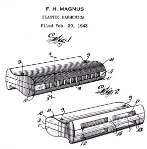 After the Second World War Finn Magnus developed the all plastic harmonica (even reeds) after there was a shortage of essential metals (such as brass) and a reduction in the exportation of German manufactured mouth organs. Finn arrived in America from Denmark in 1925 with just twenty five dollars to his name and would go on to make a million dollars from his plastic harmonicas.
