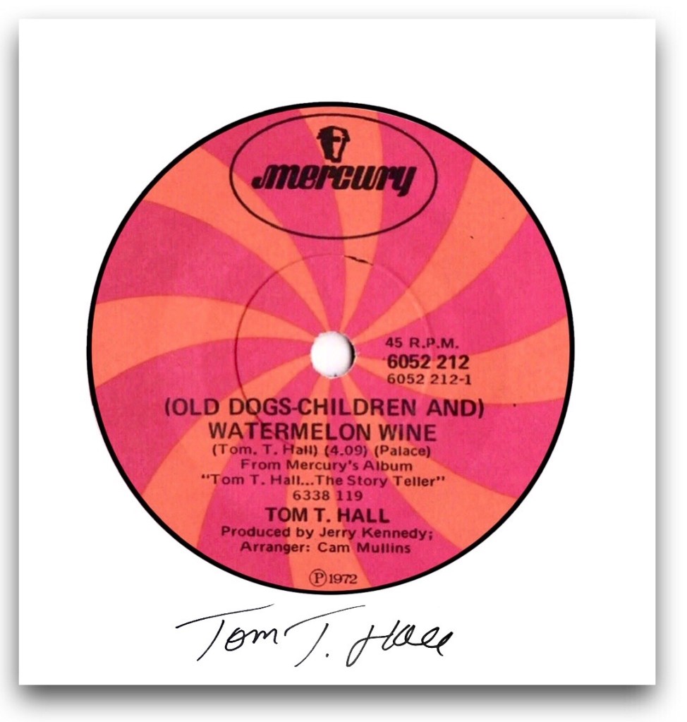 Tom penned Watermelon Wine on an airline sick bag while returning to Nashville after he had performed at the 1972 Miami Democrat Convention. The 1968 convention held in Chicago had been a public relations disaster for the Democrats when local police clashed with demonstrators. Organisers for the 1972 convention billed Tom T. Hall, George Jones and Tammy Wynette in an attempt to distract the masses and thus keep the peace.