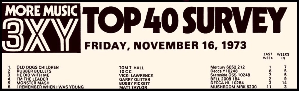 In November 1973 a bloody good country song, (Old Dogs – Children And) Watermelon Wine by Tom T Hall was placed on high rotation by Melbourne radio station 3XY and managed to find its way to number one, where it remained for the month of November. On the National charts the tune peaked at twenty-one on the 3rd November. The tune managed to keep out the popular I Remember When I Was Young by Matt Taylor who was making a return to the music scene as a solo artist. Matt had a number one on the 3XY charts back in 1971 with his band ‘Chain’. Black and Blue had the honour of being the only blues tune to achieve this distinction.