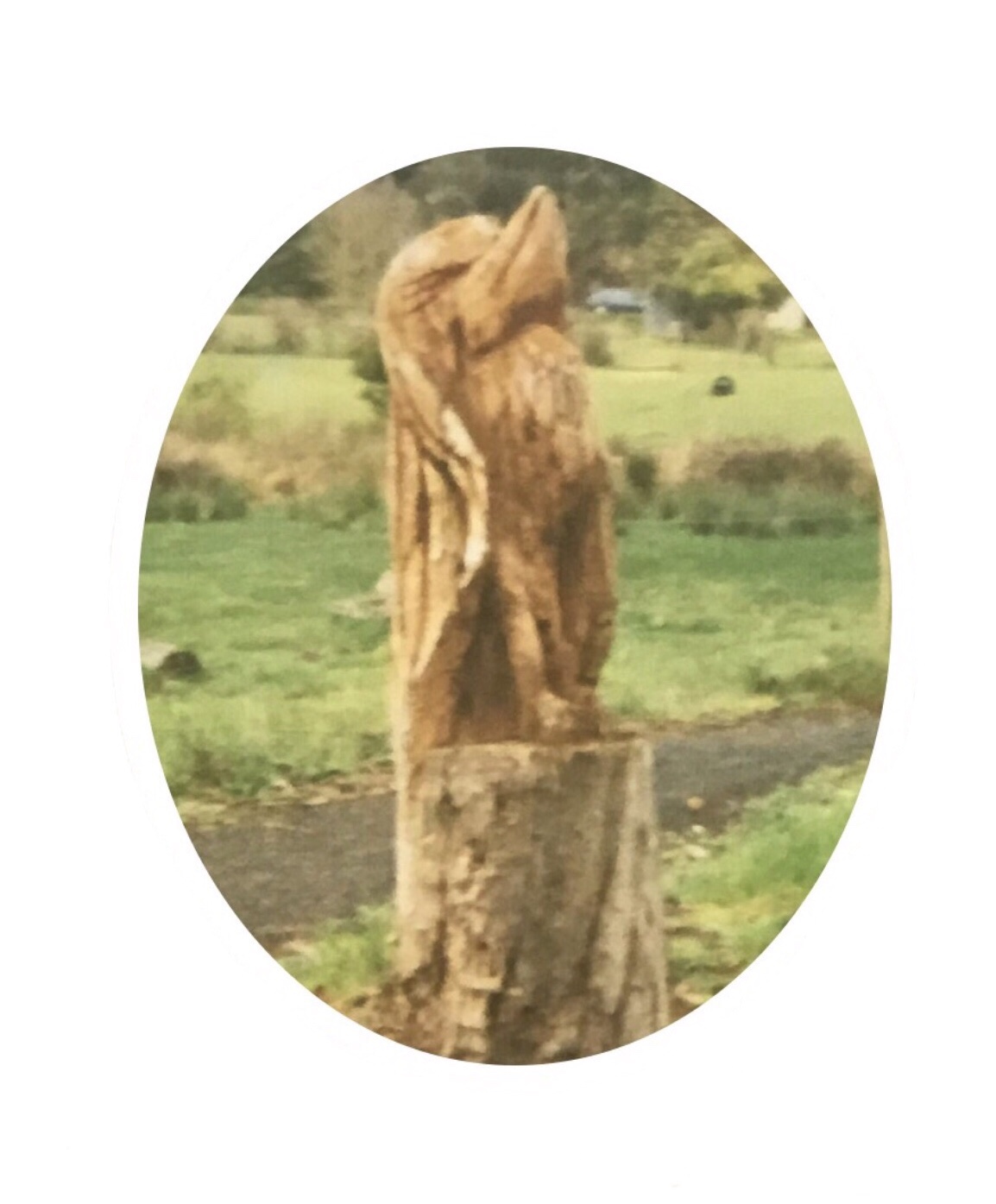 Had to throw these photographs in as well. Left is one of our local residents sitting on a branch of the old maple tree next to our front door (taken September 2020). We had a good chat – no food was exchanged except for the juicy worms in the garden. Right is a carved Kookaburra from a fallen tree just a torpedo punt (maybe a bit further) from our house. This shot was taken about twenty years ago and sadly today this Kooka is looking a little worse for wear.