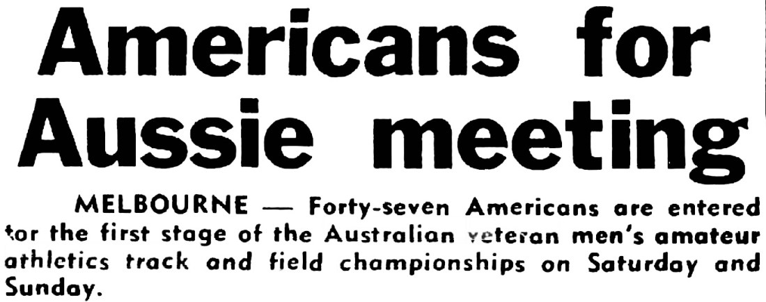 At the time, our guest Mr. Walt Stack was sixty seven and was in Melbourne to compete in the inaugural Australian Veteran Track and Field Championships organised by my Uncle. The American visitors were billeted out for an Aussie style Christmas lunch (ours was probably not that different from an English one) after competing the previous weekend at the Box Hill Athletic Track in Melbourne. A large team of fifty one USA Masters, led by David Pain, participated in the championships alongside the athletes from Australia. It did have it’s share of controversy when David Pain didn’t compete in protest of Australia’s strict enforcement of the amateur rule on an American runner who had run professionally in the past. Uncle Wal later provided David with his support for a rule change to allow over forty athletes to compete in future events, even if they had obtained remuneration in days gone by.