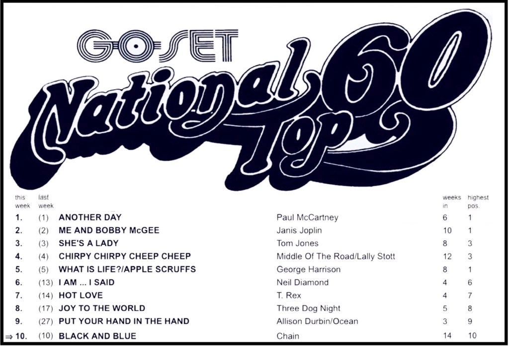 Chain was Michael Gudinski’s (Vale – 2 March 2021) first signed act and he used his entrepreneurial ingenuity by buying up the single and distributing it to Chain’s huge fan base at gigs. From there the tune had airplay, chart success and no one looked back (gonna walk). ‘Black And Blue’ was the first and only blues song to top the local charts. The album Toward The Blues peaked at number six and remained in the Top Twenty Go Set charts for fourteen weeks.
