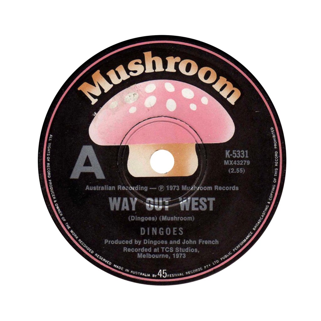This month’s 45 Revolutions features a fair dinkum workin’ Aussie tune. Written by Kerryn Tolhurst for his band the Dingoes. Way Out West was their debut single released in October 1973 and would set the band on a trek to the United States of America. In 1991 James Reyne and James Blundell resurrected the tune and it ascended the National Charts resting one short of the holy grail. The royalties were hefty and timely for Dingo Brod Smith, who was extremely grateful that Kerryn had credited the band with its composition.