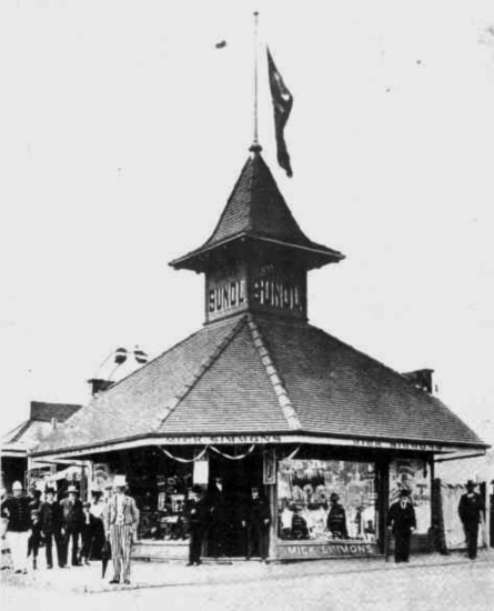 Mick Simmons had a permanent prime position (next to the Ferris wheel) at the Royal Sydney Show. A striking red brick, red tiled building with a turret and flagpole. Inside the structure there was an elaborate display of tobacco products and rifles.