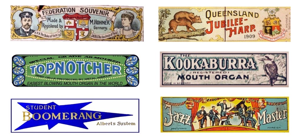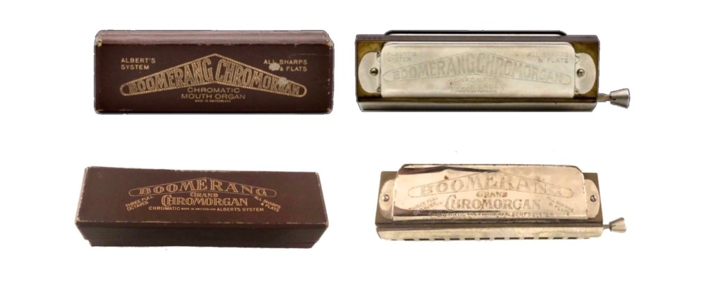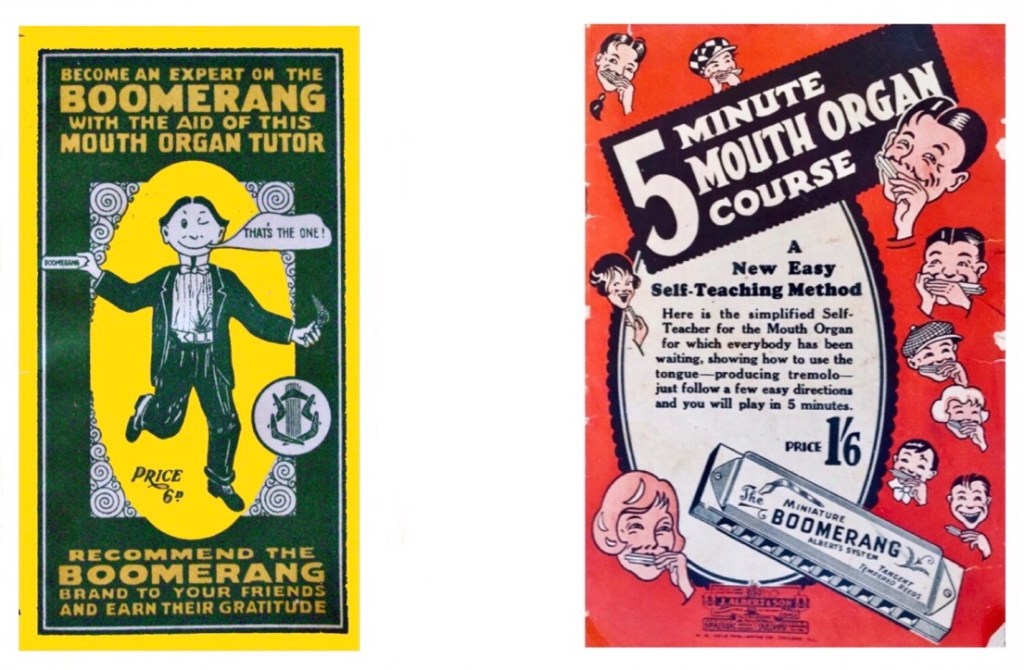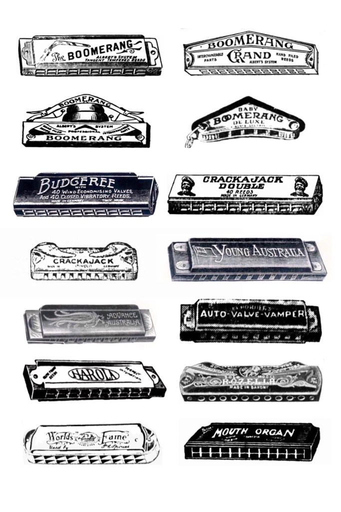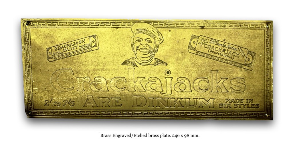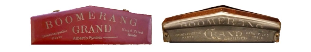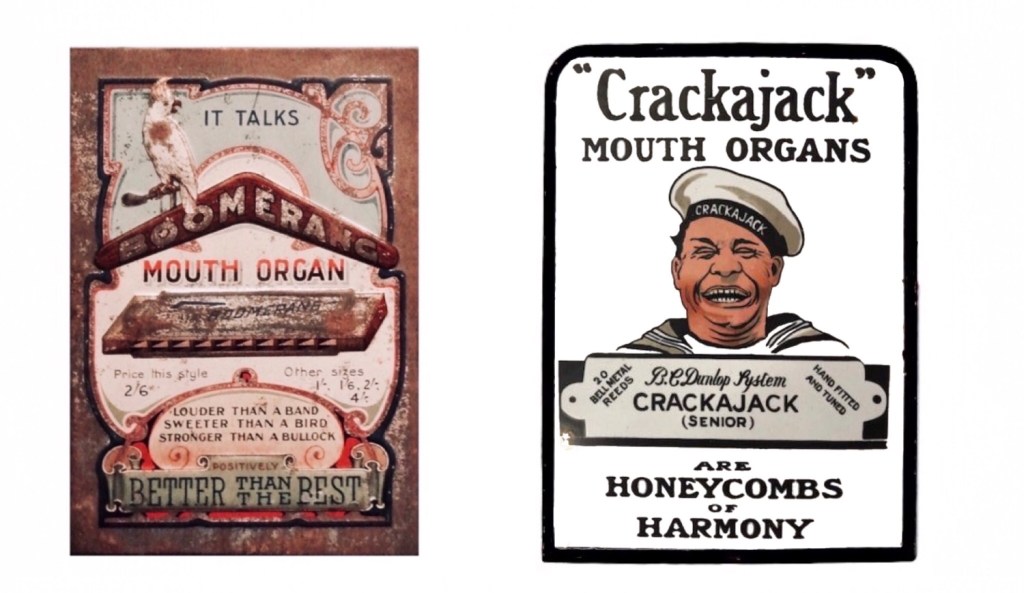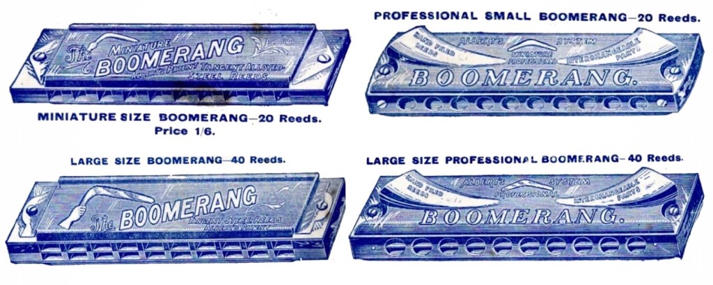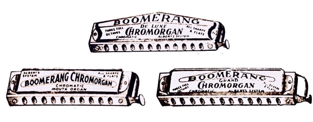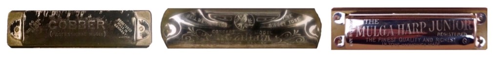 I had intentions of creating an e-book (even designed a cover – pictured) as a quick reference for Australian named (and/or prominent in the market place) mouth organs: Crackajacks, Cobbers, Boomerangs and the like. I’ve had second thoughts – so what I have produced here is what would have been included without any accompanying information. This is purely pictorial. Keep coming back if you’re interested, because I have more, and from time to time I will supplement this page. If you want to cross reference any of the harmonicas, you could bang the name in the search engine below or head over to Aussie Models Timeline (the original) or the remastered version.