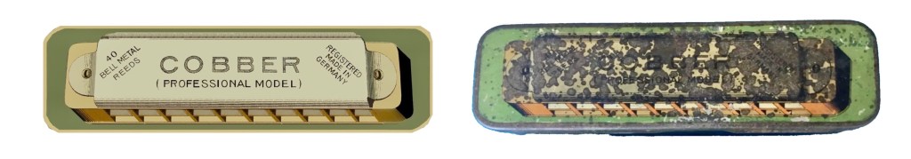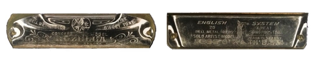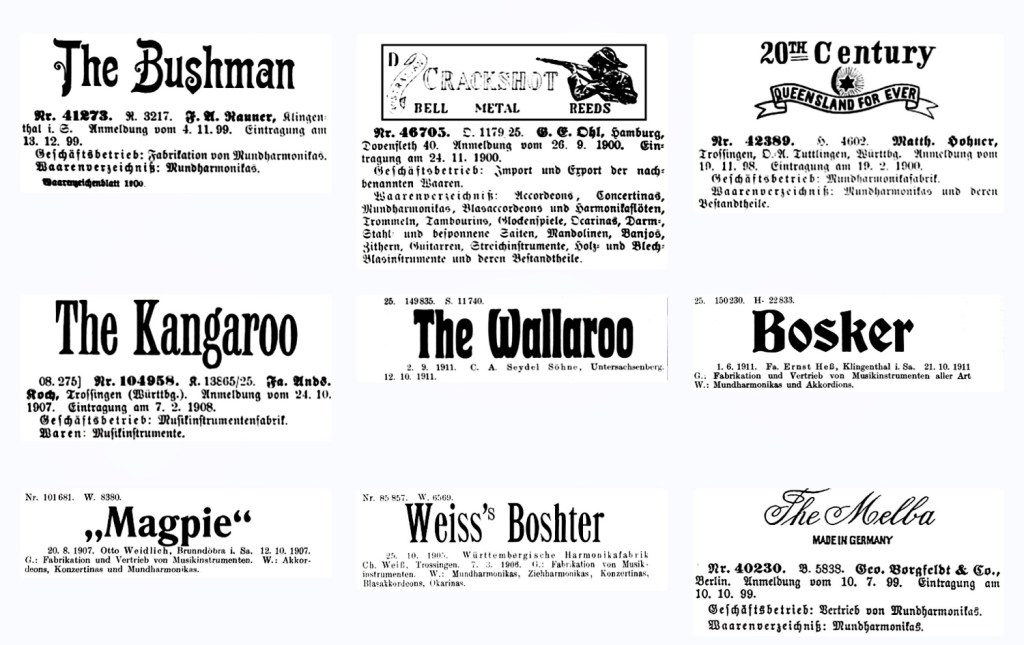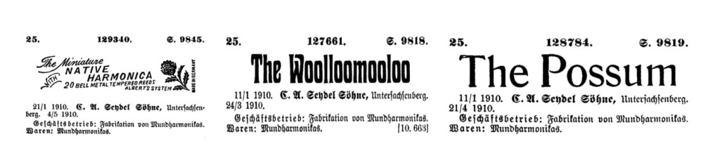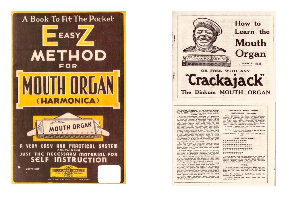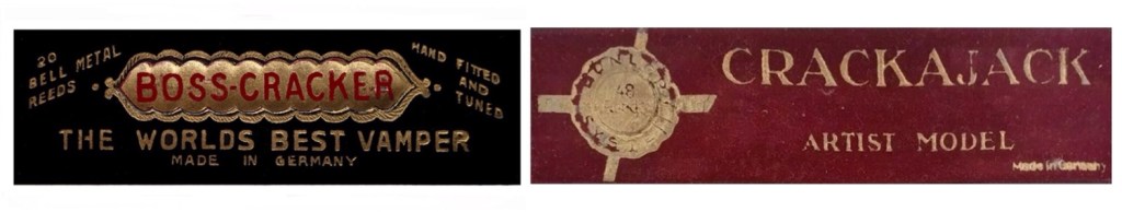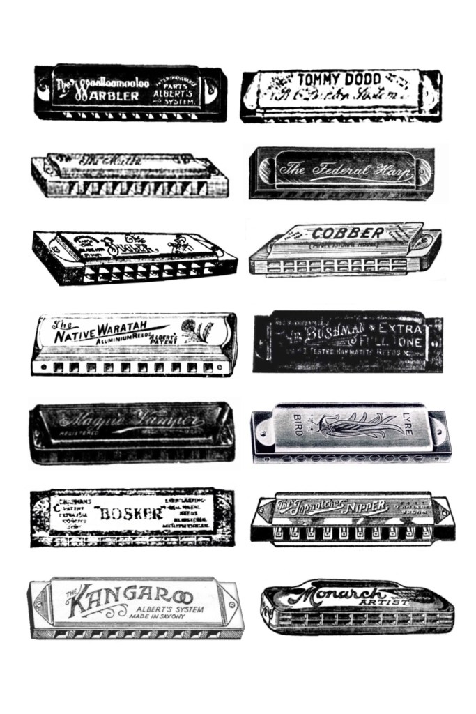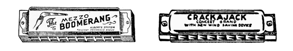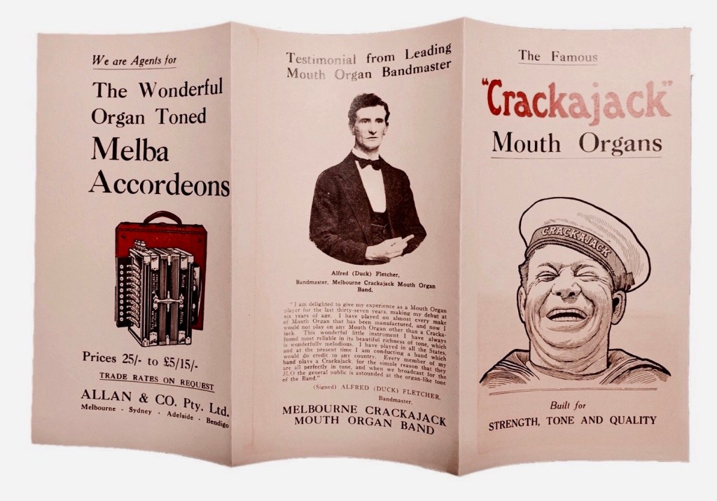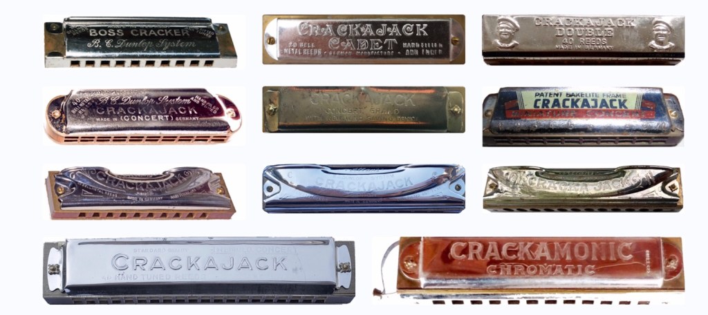 I had intentions of creating an e-book (even designed a cover – pictured) as a quick reference for Australian named (and/or prominent in the market place) mouth organs: Crackajacks, Cobbers, Boomerangs and the like. I’ve had second thoughts – so what I have produced here is what would have been included without any accompanying information. This is purely pictorial. Keep coming back if you’re interested, because I have more, and from time to time I will supplement this page. If you want to cross reference any of the harmonicas, you could bang the name in the search engine below or head over to Aussie Models Timeline (the original) or the remastered version.
