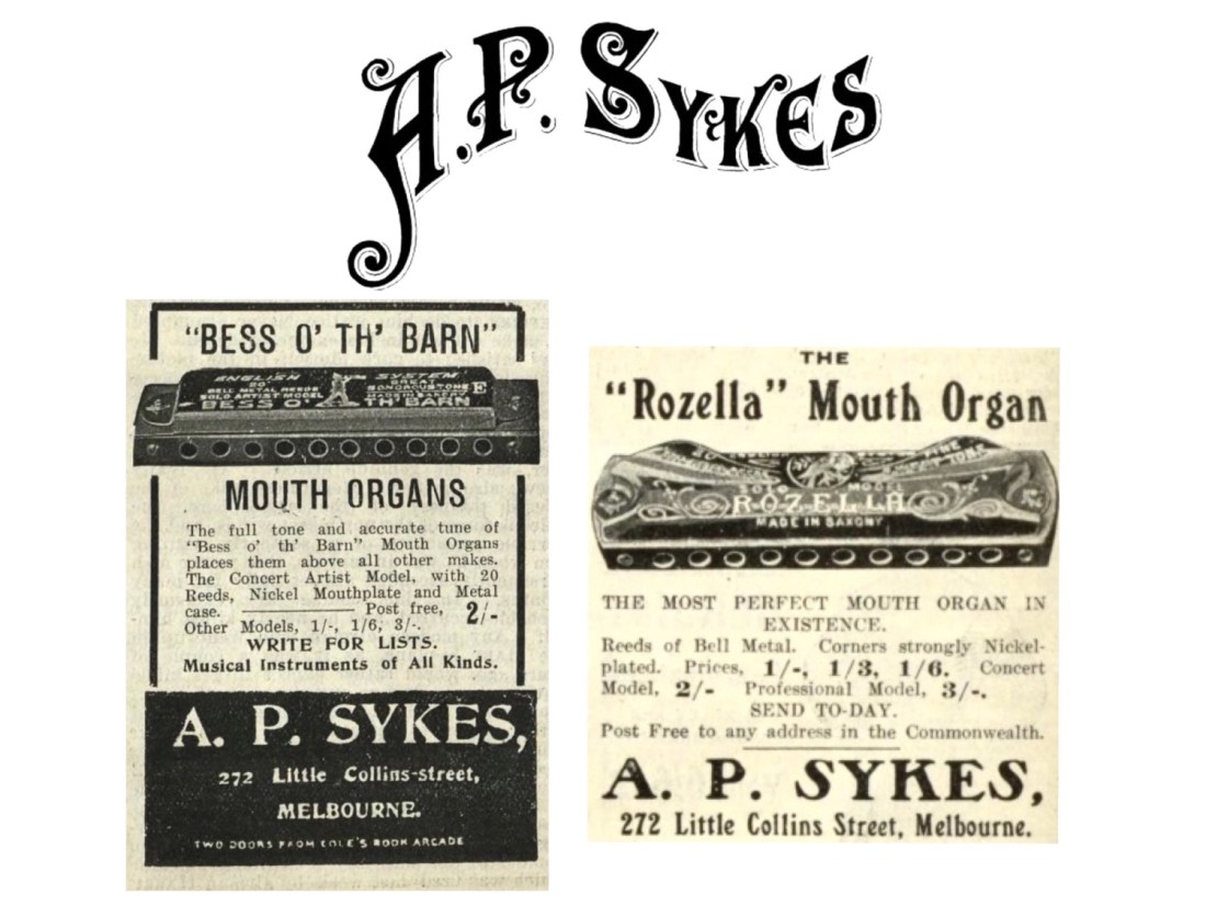 Alfred Percy Sykes was the founder of A P Sykes musical instrument importers formally of 202 Flinders Lane Melbourne.