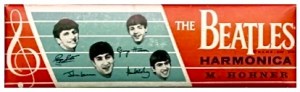 The Besses tour was a marketable commodity Down Under and F A Bohm manufactured a Bess o’ th’ Barn mouth organ to cash in. A brass band in the pocket! Hohner produced a Beatles harmonica some fifty years or so later when they were at the peak of their powers. It was really only the graphics on the box as nothing was distinctively marked on the cover plates. There was a wee mistake with the signatures not lining up with the caricatures of Paul and George. Pictured below, the boys Down Under, with their gifts – didgeridoos. Don’t think the didge’s appeared on an album.