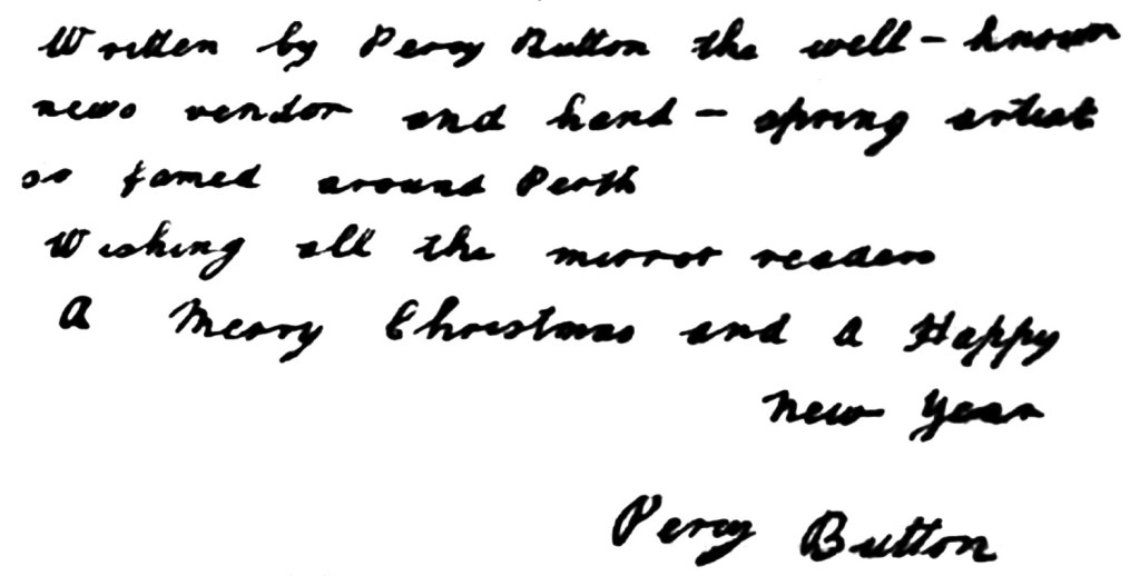 Visitors to the fine city of Perth will be aware of a striking hand standing statue in Hay Street of a gentleman by the name of Percy Button – often misspelled by pluralising his surname.