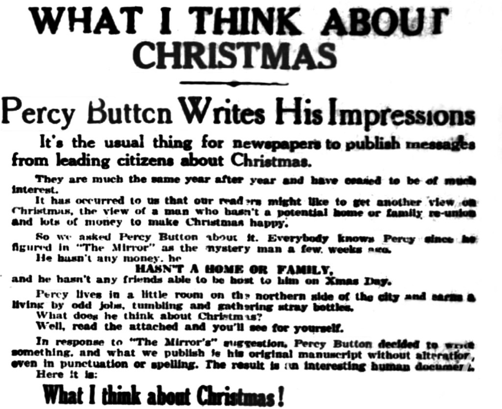 The paper would remain in constant vigil with Percy and later that year they sought his impressions of Christmas.
