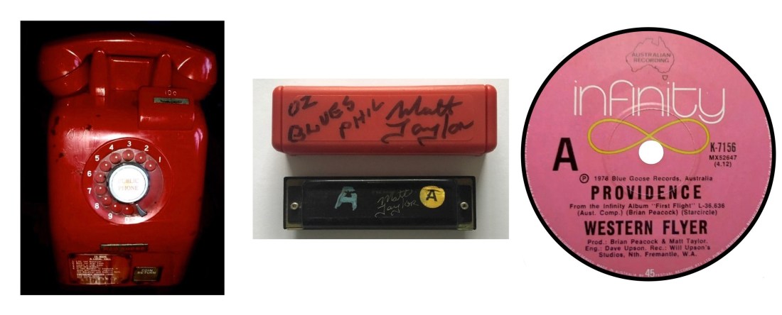 In a conversation I had with Phil prior to a Caravan gig, he was amazed how Matt could make money by selling off his blown out harps (autographed). He was wondering if he could sell off his old guitar strings. Perhaps the ‘G’ string might be of value, Phil? In one quick chat with Matt to promote some of his upcoming Melbourne gigs, he reminisced on a time when Chain was belting out tunes at Berties. He had contacted the show by way of a pay phone from the foyer of a Melbourne hotel that still required slotting coins at regular intervals. This could have been back at Berties in the sixties. Hear here Coins.