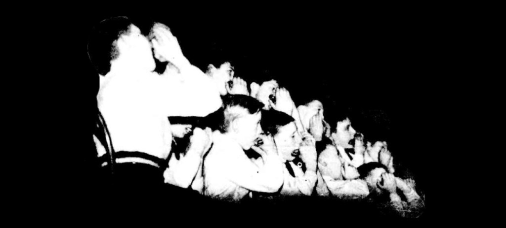 Members of the Junior Australian Mouth Organ Champions who played selections at The Herald Football Get Together of 1935