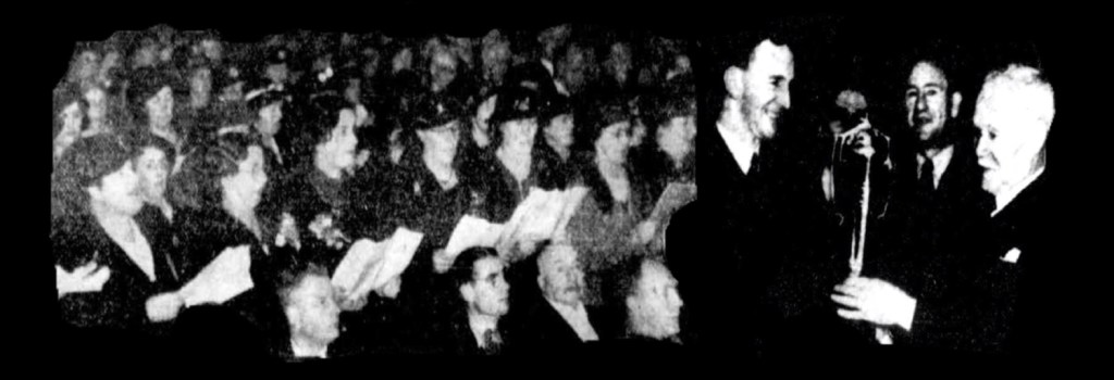 In 1936 Footscray’s efforts were thwarted by Essendon. The previous year Footscray performed a brilliant rendition of John Peel, but they may have bitten off more than they could chew by attempting, for the first time by a choir in Melbourne, four massed parts of The Lost Chord. Another performance was held in September this year too with Hawthorn taking the chocolaties.