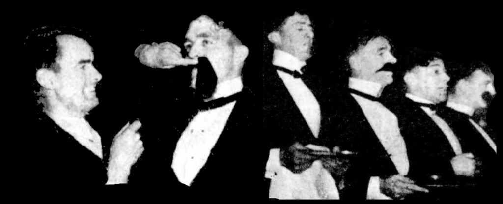 A big part of the night was the The Football Minstrel Chorus, but as this is no longer kosher, and rightly so, it is better to leave this aside. Except to say that the footballers could be recognised by their numbers which were identified in the program. In 1937 the minstrels in number order were 1/ Frank Anderson (Carlton) 2/ Dick Hingston (Melbourne) 3/ Bull Adams (Melbourne) 4/ Jack Crane (Richmond) 5/ Tich Edwards (Fitzroy) 6/ Jack Cotter (Richmond) 7/ Len Stott (Fitzroy) 8/ Rory Fischer (Melbourne) 9/ Len Thomas (South Melbourne) 10/ Bernie O’Brien (Footscray) 11/ Jack Hale (Carlton) 12/ Des Fothergill (Collinswood) 13/ Len Jones (Melbourne) 14/ Ron Fisher (St.Kilda) 15/ Ted Ellis (North Melbourne) 16/ Jim Greenham (Footscray) 17/ Roy Jacobsen (South Melbourne) 18/ Frank Kenny (Yarraville) 19/ Reg Garvin (St.Kilda) 20/ Hugh Torney (Essendon) 21/ Ted Rippon (Essendon) 26/ Ron Todd (Collingwood) 27/ Dick Abikhair (Hawthorn) 29/ Son Griffin (Hawthorn) 30/ Mick Price (Carlton) 31/ Jim Toone (Brunswick) 32/ Gordon Ayling (Melbourne) 33/ Alex Penny (Yarraville) 34/ Bruce Andrew (Collingwood).