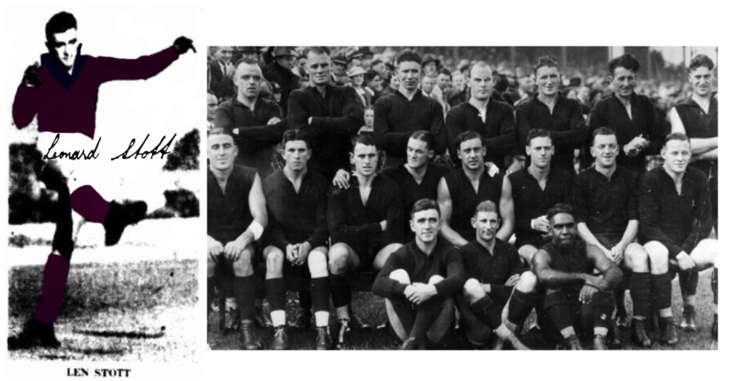 Just a wee bit extra on Len Stott and Tich Edwards of Fitzroy. Leonard Wilbur Stott was born in Geelong West on the 16th November in 1909. He was nephew of Geelong wingman Eddie Scott. Len’s early education was provided by Ashby State School. When he came to Melbourne he went to prestigious Ivanhoe Grammar. In 1929 Len joined the Preston Football Club, but after a season he retired when he suffered a severe illness. Three years later he rocked up at Fitzroy and, after a couple of seasons, he was a regular feature in the first eighteen, although he did struggle with illness and injury. Outside football Len was a wood machinist and a fine cricketer at Heidelberg. He passed away on the 7th May 2000 in Heidelberg. He played 62 games with Fitzroy and kicked 16 goals.