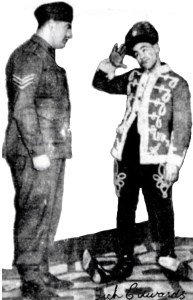 1940 – Sergeant Len Thomas (North Melbourne) and Gunner Tich Edwards (Fitzroy) in an unrehearsed interlude at the Get Together held at the Melbourne Town Hall.
