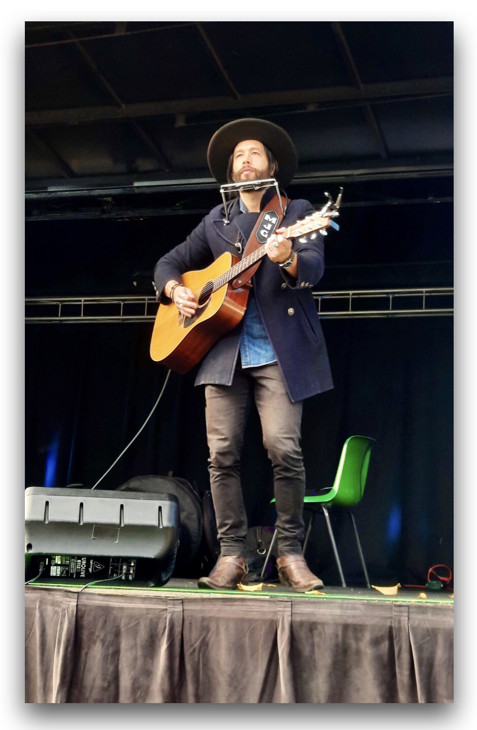 It was a crisp Sunday afternoon in May at Emerald’s annual PAVE festival, where we had front row seats to a hot set from Matt Joe Gow. No rain (or dripping off trees) just falling autumn elm leaves (see on stage). Several numbers from the back catalogue, Flowers In Your Hair, Steady Life, At The Bar, It’s Not Hard, Down River and a few newbies, Break, Rattle & Roll, Old Hotel Room and an unreleased number that will be his next single.