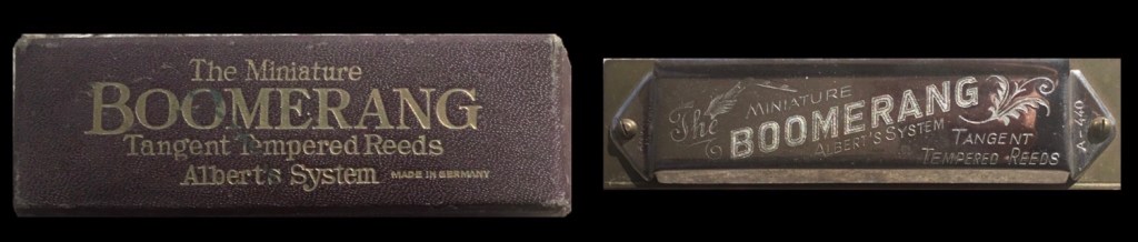 More exorbitant priced harmonicas offered on a popular online auction site. A ten hole, twenty reed Miniature Boomerang (with box) was recently advertised on a well known online auction site for an opening bid of $650 Australian – “You cannot be serious!”. Not that rare and not the most sought after model, although to be fair it is nearly an antique. The box has a wee bit of damage, but the harp appears to be in pretty good nick. It would date to circa 1926 as the label inside the box lid indicates the price of the Boomerang is three shillings from J. Albert & Son, 137/39 King Street. On its second cycle through the auction, $400 was shaved off – (second floor Mens and Ladies underwear) going down!