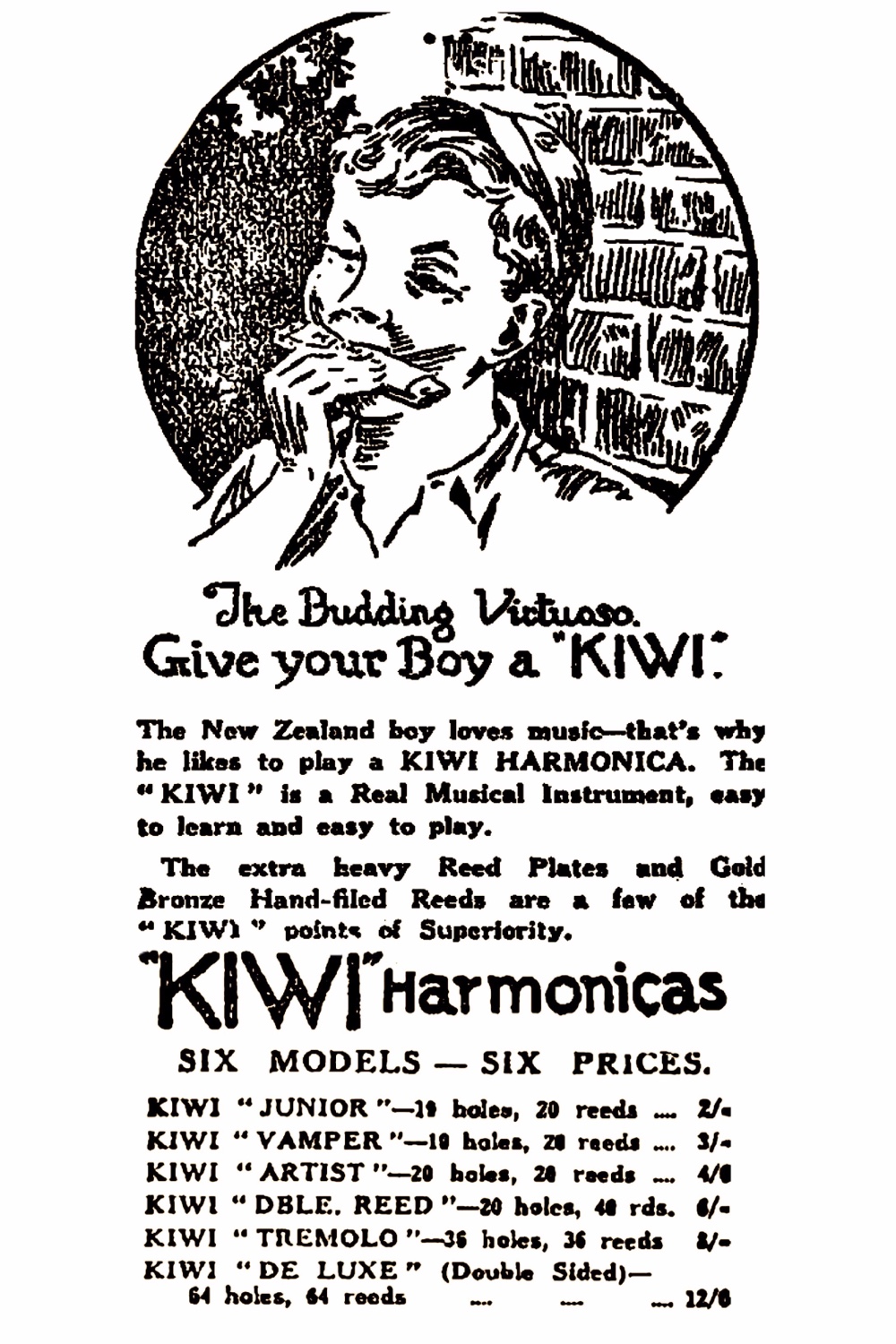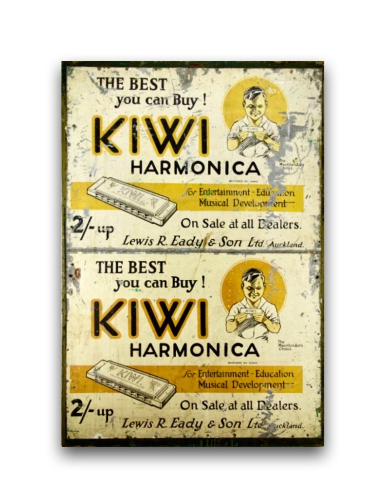 Speaking of Doug, I stumbled across a tin sign and a 1925 newspaper advertisement by Lewis R Eady & Son Ltd of Auckland for the Kiwi harmonica.