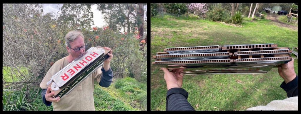 I had no intention of purchasing a harmonica of this kind, but for thirty five Aussie bucks (fair bit of harp for that price) I just had to as there’s been nothing in my wheelhouse for sometime now. I had been gifted Larry’s programs (and records) for shows in Oz a little while back and I thought it would be a nice combo.