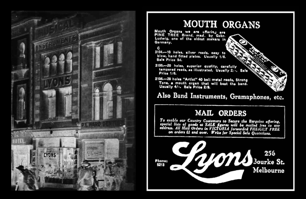 On a recent scrutiny of past newspapers I came across a couple of interesting advertisements. The first was for a music store in Bourke Street Melbourne, who were selling the Pine Tree Brand (Gebr. Ludwig) mouth organ in 1928 and the other a Sydney emporium selling the Bell Brand mouth organ in 1913.