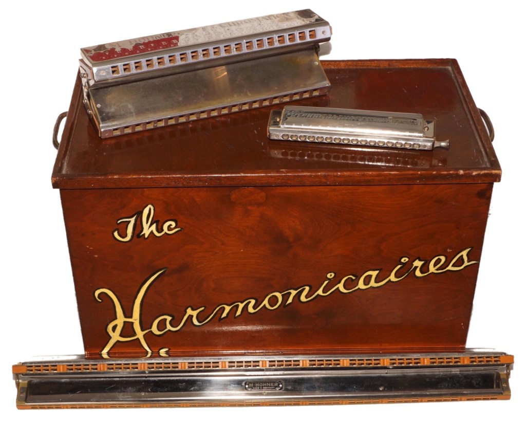 Canadian collector and Riff Raffer Doug Dawson has acquired this fantastic wooden travelling case of The Harmonicaires. Not the Aussie Harmonicaires, but the Canadian trio of Doug Pell, Bill Wright and Bob Schrader. Doug located this beauty from a family in Toronto, who were unaware of its history.