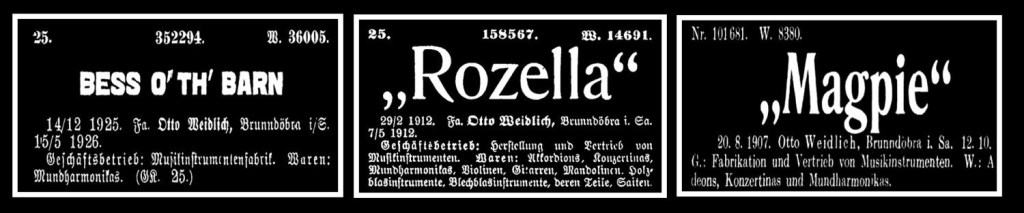 It was the one and only Otto Weidlich of Brunndobra (now Klingenthal) of Germany. We had already identified Otto as the manufacturer of the Magpie mouth organ brand for Macrow’s of Melbourne. I wonder if he was responsible for Mick Simmons Perla. Amendments have been made to both Aussie Models Timelines. More to come next month.