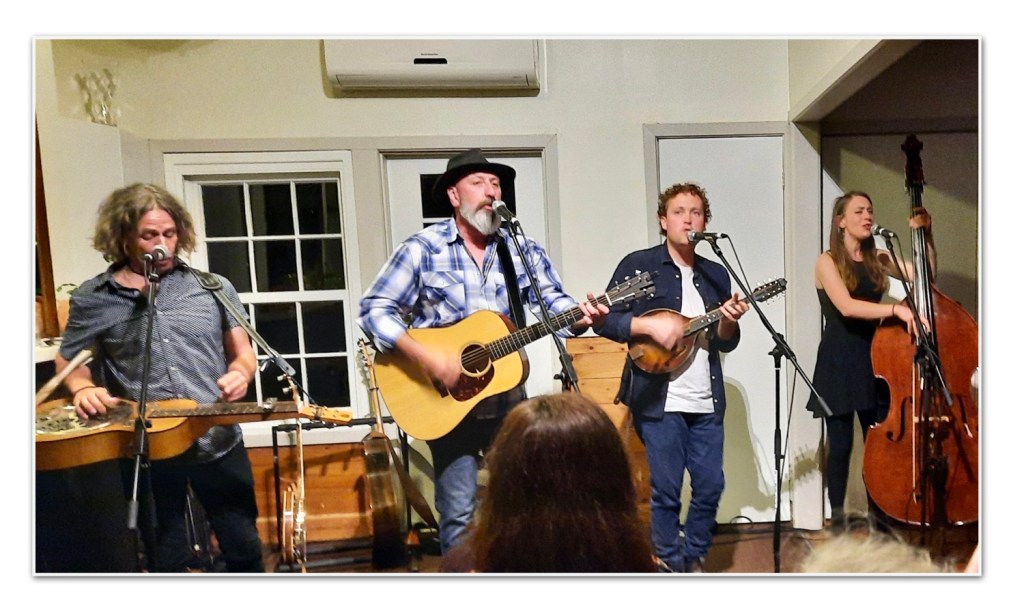 It was the first Friday of the month and that means Selby Folk Club was back in action. Pam and I were keen to see the main attraction The Humbuckin’ Pickups. We winded our way along the mountain just a short twenty minute drive on a golden autumn evening. Last month, in summer we were rugged up, this time all I needed was a tee – go figure. They set the ball rolling with their single and title track off the new album Just Like Winter. If mainstream radio could get out of playing golden oldies this would race up the charts. It’s so good, I know some of the lyrics and could sing along.