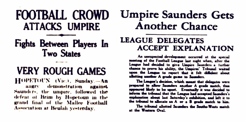 I do have to agree with a quote of Joe’s regarding umpiring. “When players go to a match knowing umpires have a uniform interpretation, no matter who the umpire is, then they can play with every thought on the actual game.” (Barrier Miner, 4 May 1935). Personally I don’t know that I’ve ever witnessed this.