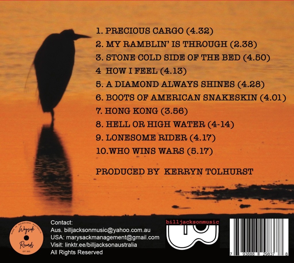 Bill Jackson and Kerryn Tolhurst have crafted an album of the highest quality in ‘1965’, a seminal year for Bill and the music world. The first three tunes all could have landed as the lead off single, but it was Precious Cargo that received the nod. It would have been an apt title for the album as it’s carrying a full cargo of shiny diamonds. The lead single has a great back story and I’ll let the key participants outline its peregrination.