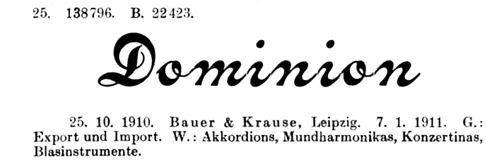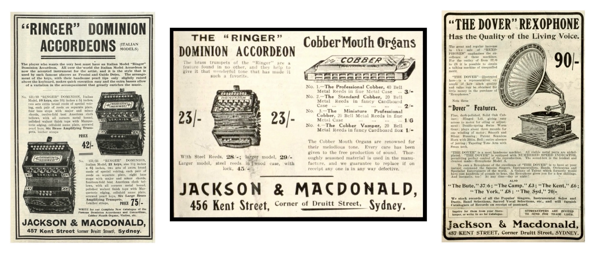 Jackson & MacDonald’s Dominion Accordion was also imported from Bauer & Krause.