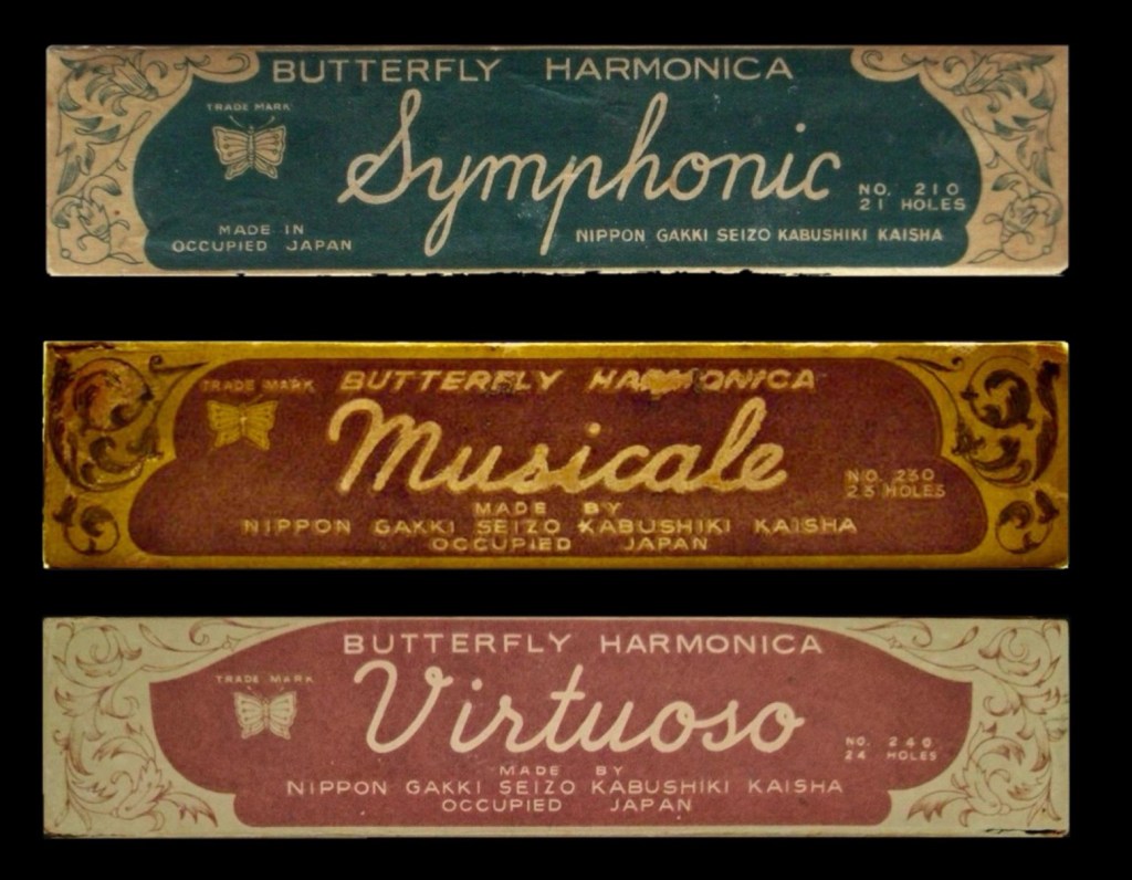 Nippon Gakki harmonicas, probably during the 1970’s, had Yamaha and the logo labelled prominently on the boxes of the No – 20 tremolo, No – 23 Musicale and the No – 24 Virtuoso. They all had Nippon Gakki printed under the number, but these weren’t Butterfly branded. The Butterfly brand had officially been decommissioned.