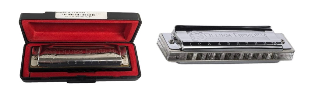 As they frequently exclaim on the Antiques Roadshow and as eloquently as Mike Wazowski questioned, “You’re Jokin?” The used Hohner Blues Bender pictured above left was advertised in a store that converts instruments for cash for more than what you can buy a new one – pictured right!