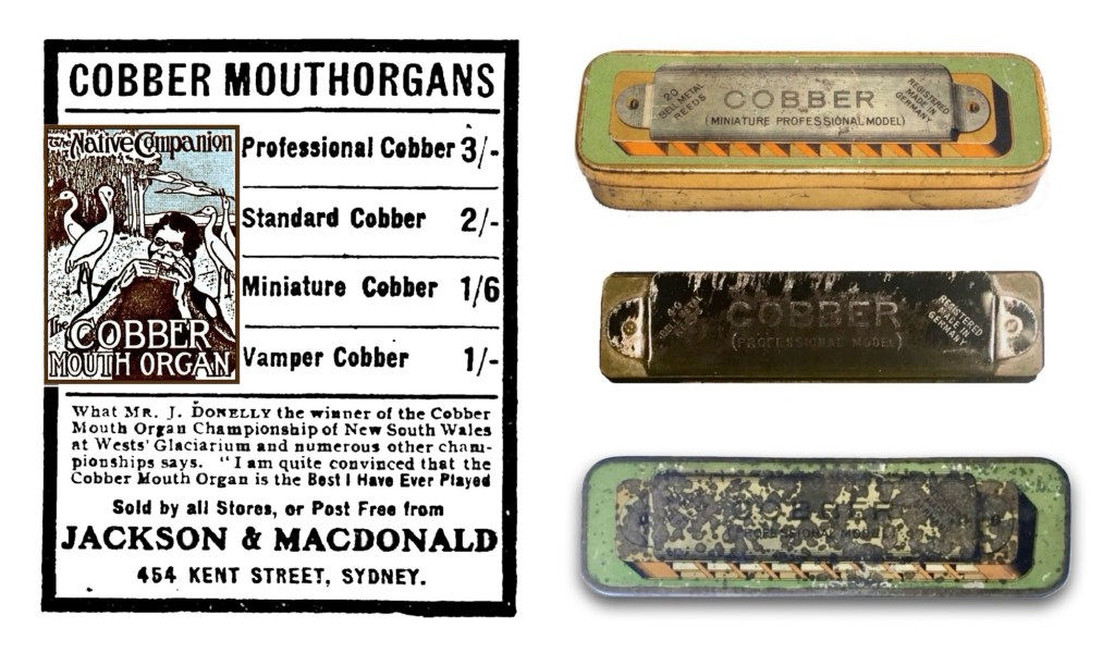 Well, of course, then I remembered that the ‘Cobber’ tin and cover clearly state ‘Made in Germany’ and my excitement quickly faded. Still, that’s one hell of a coincidence – they were marketing their own range of (presumably rebranded) harmonicas around the time they were dealing with a company that also made harmonicas.”