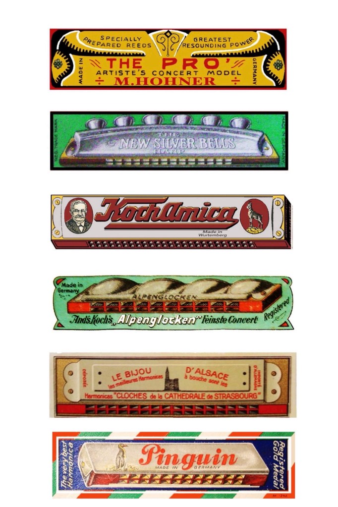 So Pat had me thinking of other left field ideas. What about makers that had harmonicas on the box top like the Cobber tin? There was Hohner’s The Pro, Seydel’s Silver Bells, Koch’s Kochamonica and the Alpenglocken, Weiss’ La Bijou and Max Spranger’s Pinguin. Still no closer!