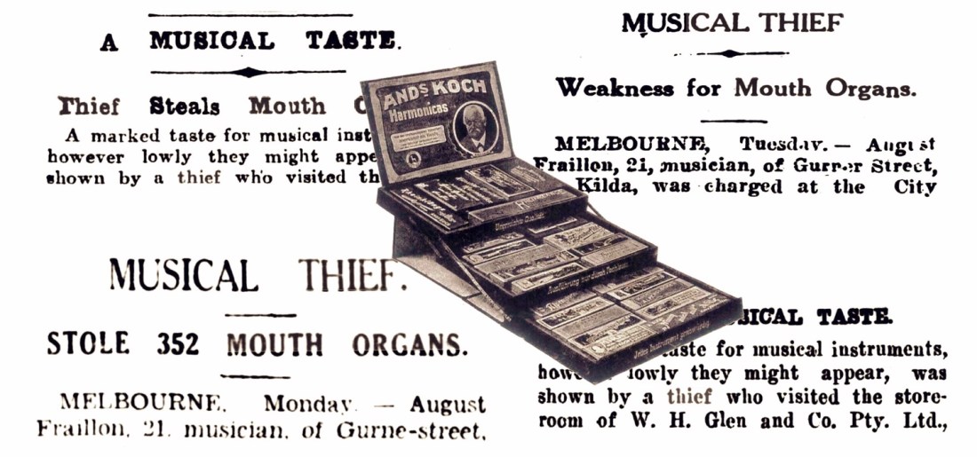 I’m sure most of you have heard of The Great Train Robbery of 1963 when the Roy Mail train from Glasgow to London was brought to a halt and robbed. Some of you may even be familiar with The Great Bookie Robbery of 1976 when six men stole between fourteen and sixteen million from bookmakers … Continue reading The Great Mouth Organ Heist