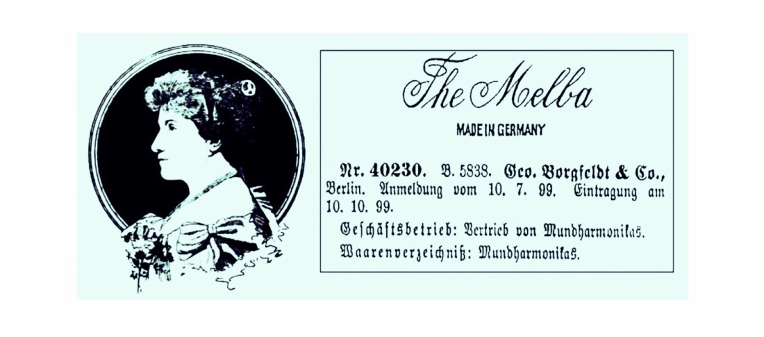 Number 20, pictured here in this Geo. Borgfeldt 1899 Catalogue, is an Aussie branded mouth organ named in reference to our world famous opera singer Dame Nellie Melba. Nellie was born Helen Porter Mitchell in Richmond (an inner city suburb of Melbourne, Victoria Australia) and while learning the ropes in London in 1886, she adopted … Continue reading Doin’ a Melba (or a Farnsy)